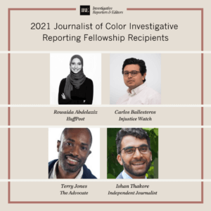 Rowaida Abdelaziz of HuffPost, Carlos Ballesteros of Injustice Watch, Terry Jones of The Advocate, and Ishan Thakore, an independent journalist, will serve as IRE’s 2021 Journalists of Color Investigative Reporting Fellows.