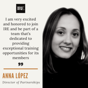 Investigative Reporters and Editors is pleased to announce that veteran nonprofit executive Anna López is the new director of partnerships for the 6,000-member organization.