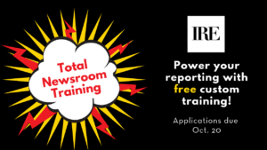 Applications are now open for Total Newsroom Training — IRE’s grant-funded, customized training program returning for its seventh year. IRE’s experienced trainers will visit selected newsrooms for two days of intense, in-house investigative training – all at no cost. Spots in the program are limited and awarded on a competitive basis. Total Newsroom Training is meant…